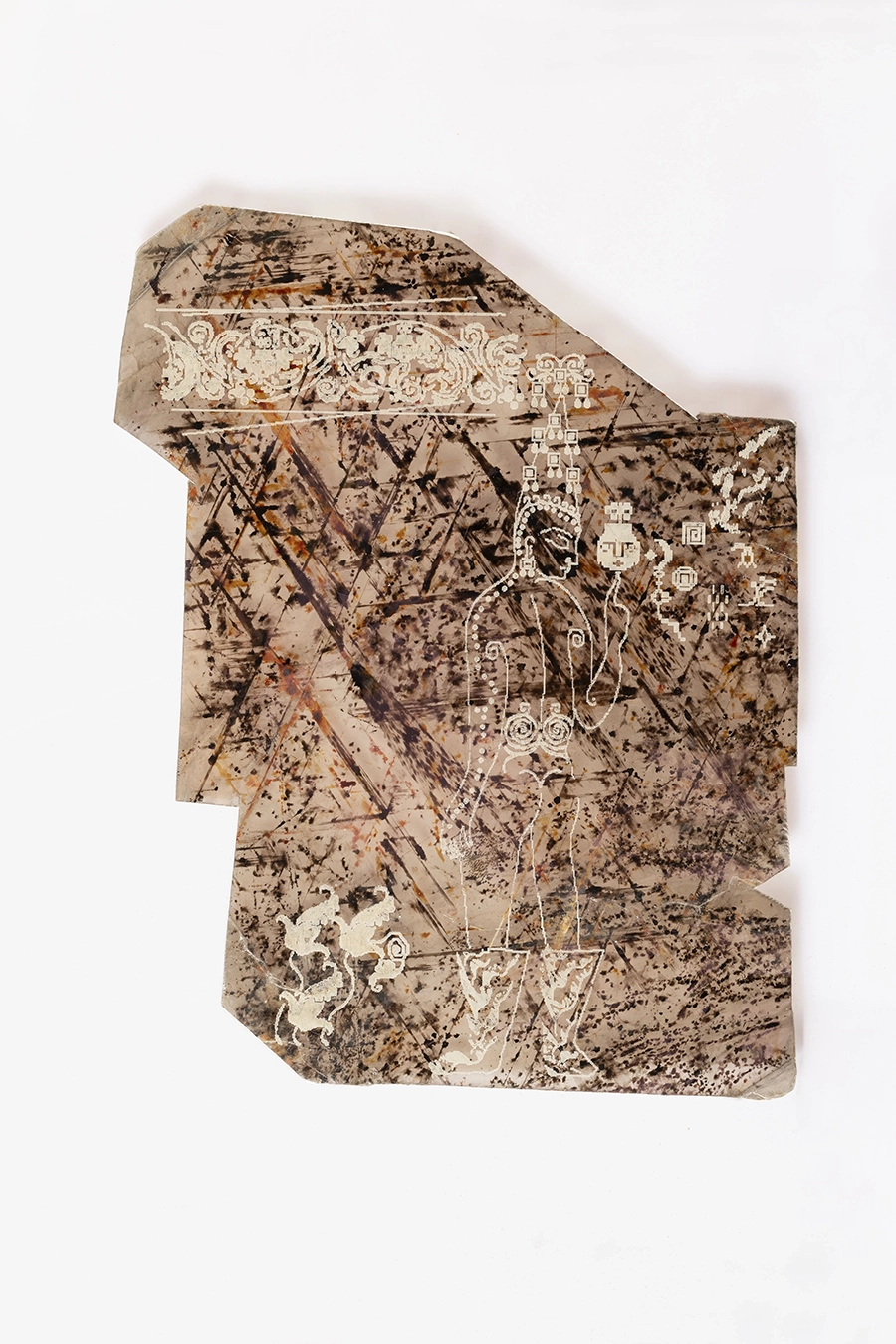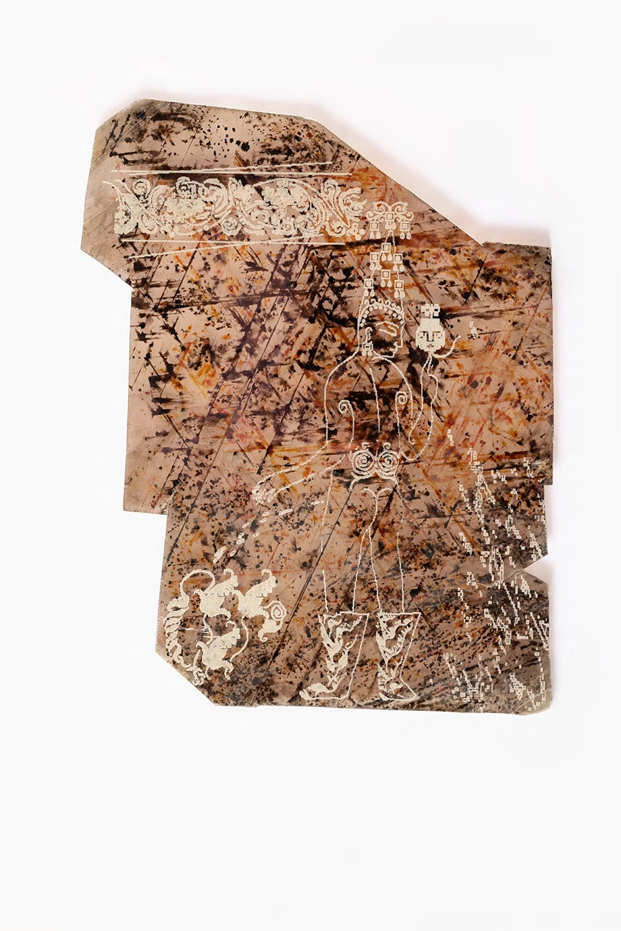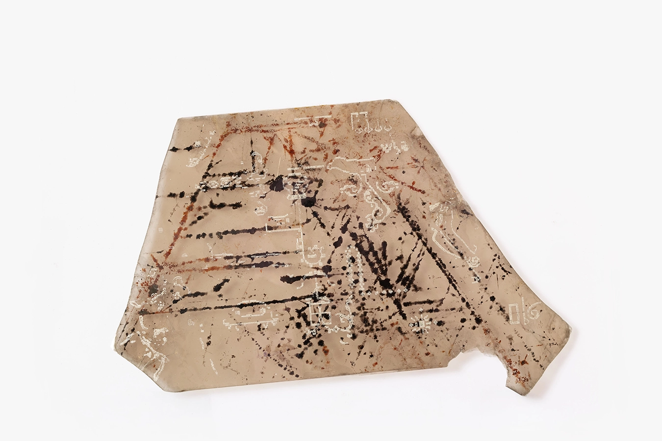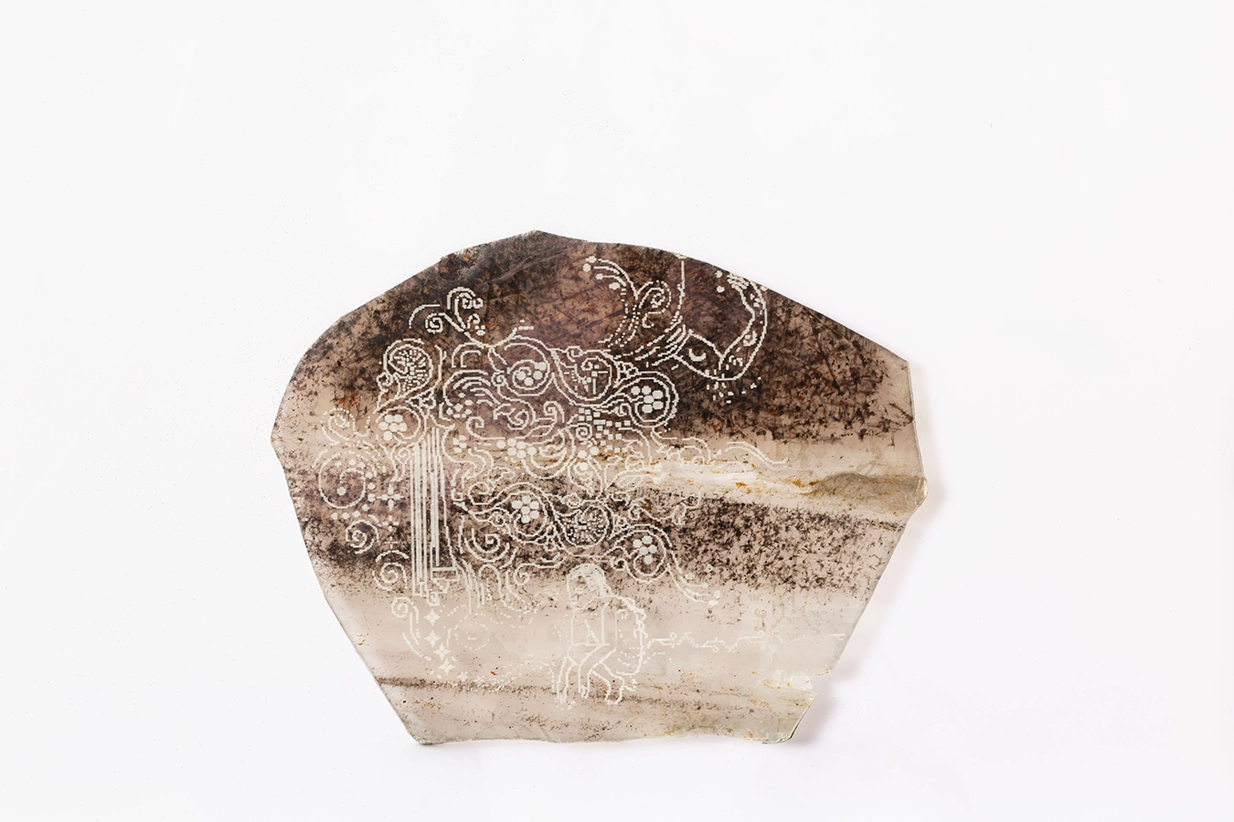 Drawings on mica, steel antenna and granite stone from Sadarahalli
