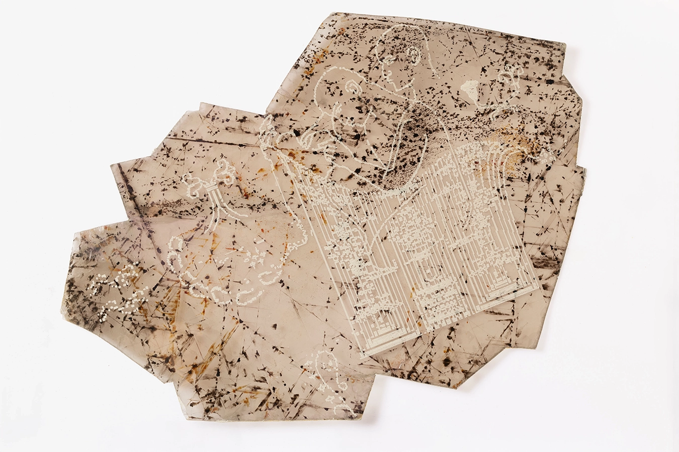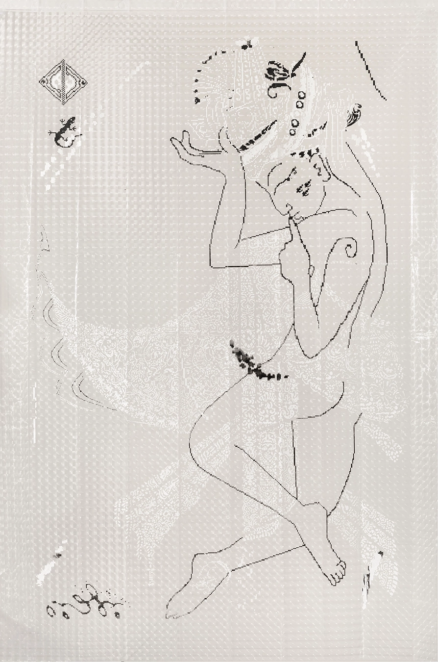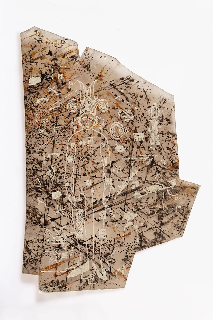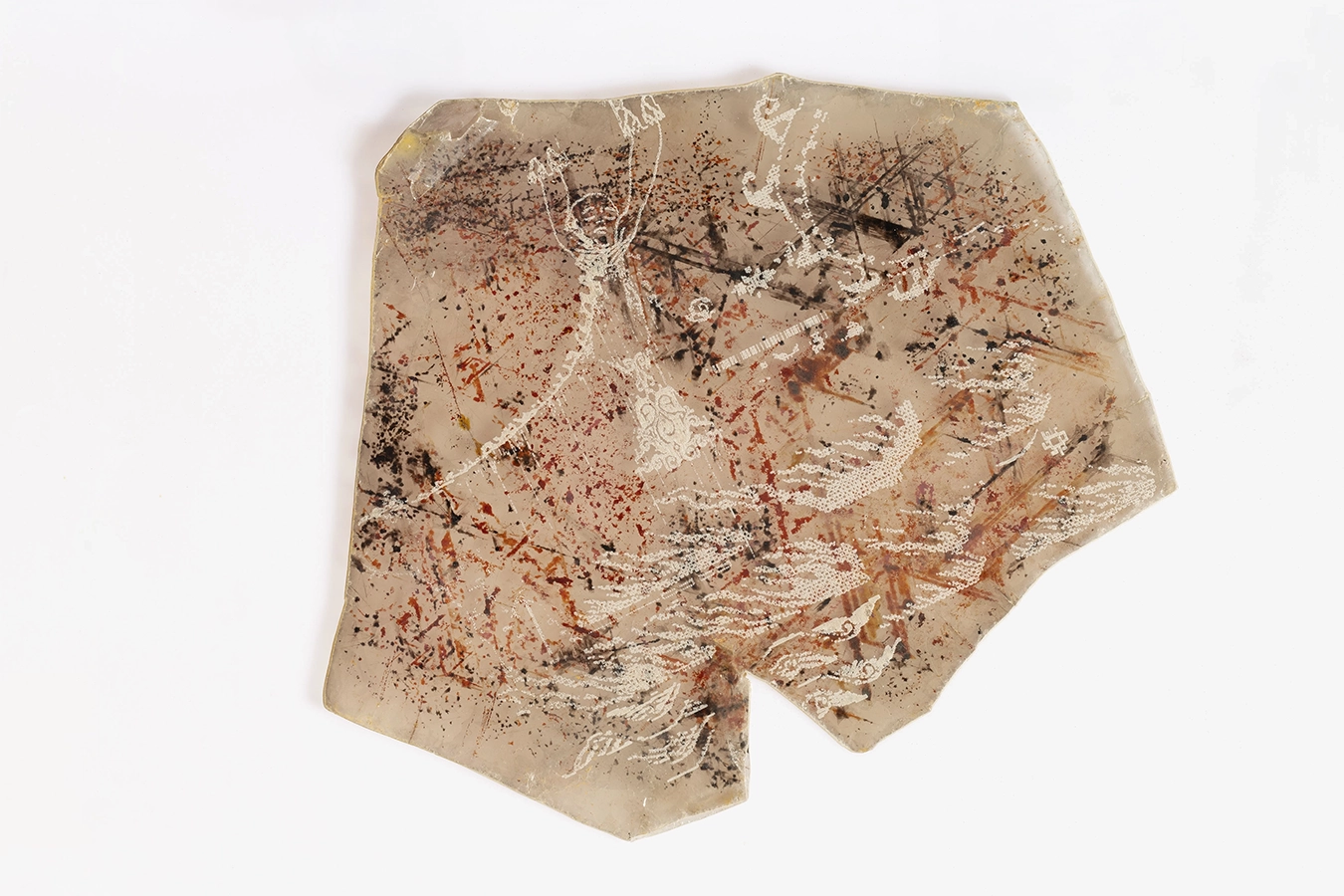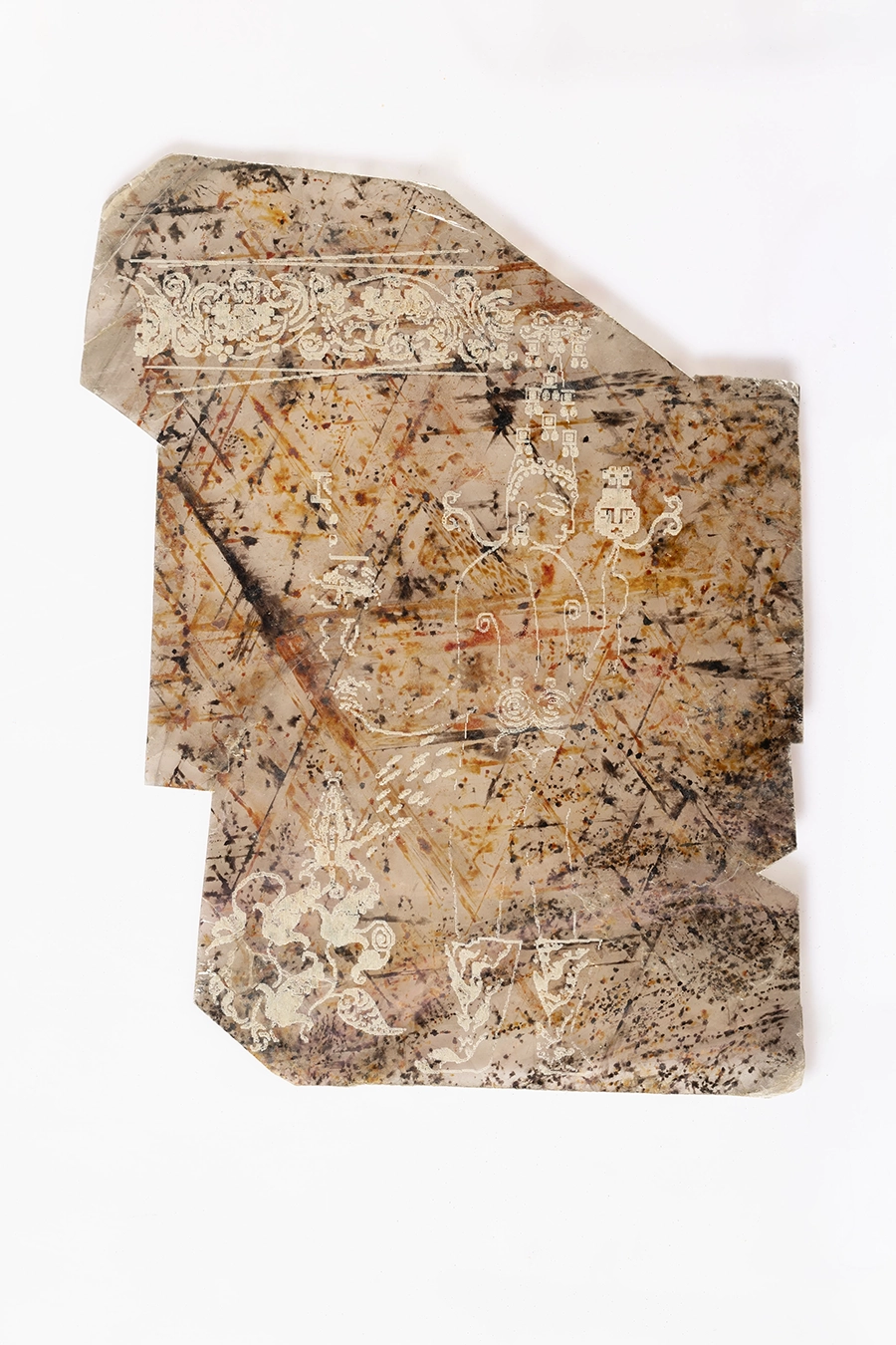Drawings on mica, steel antenna and granite stone from Sadarahalli