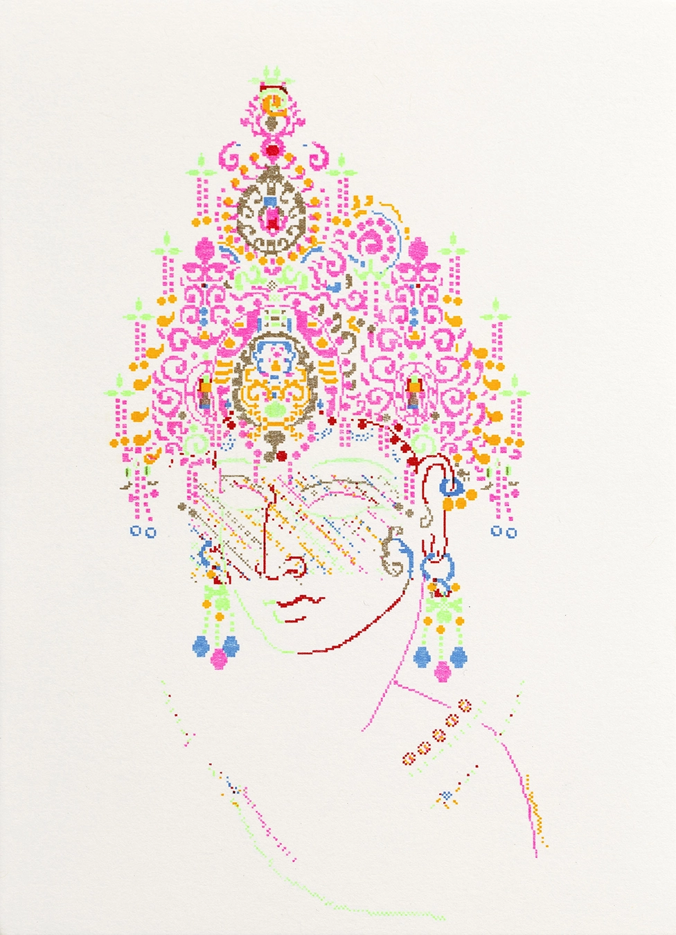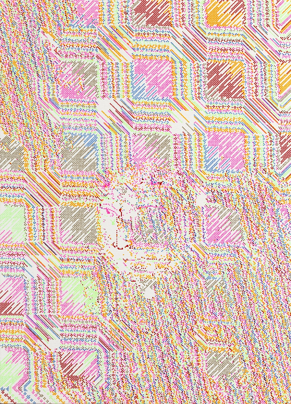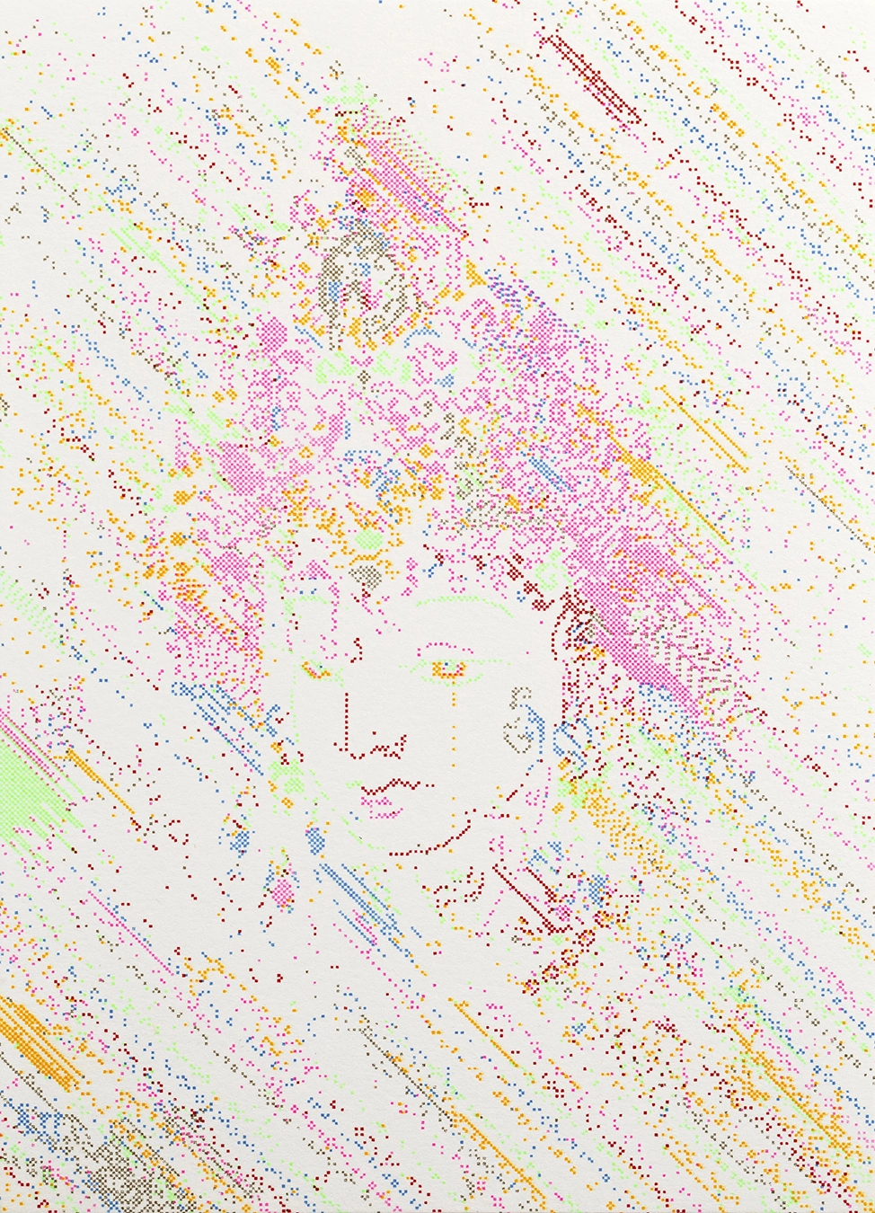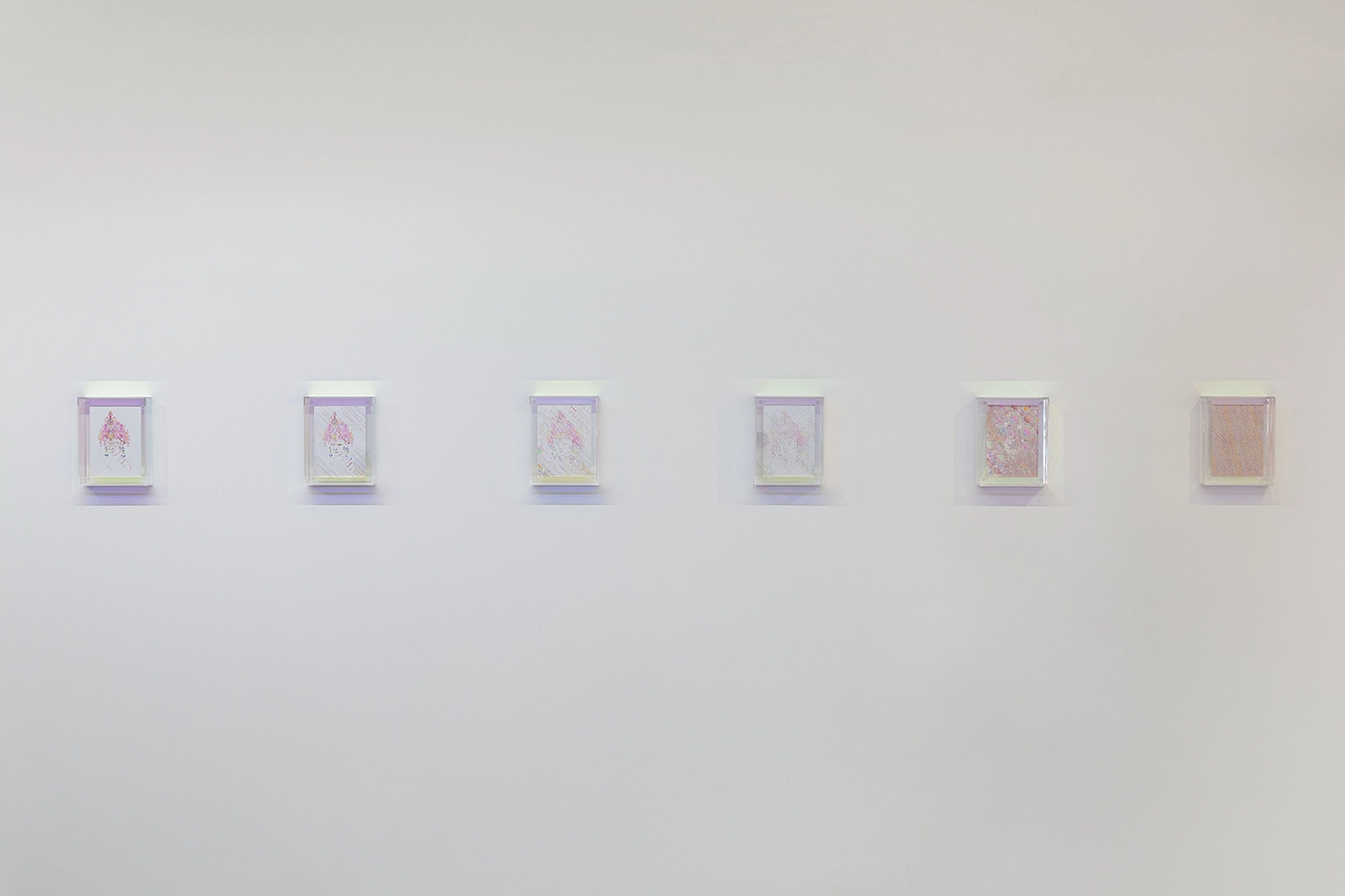 6 colored risograph prints on arches cold press paper, framed in dichroic acrylic frames